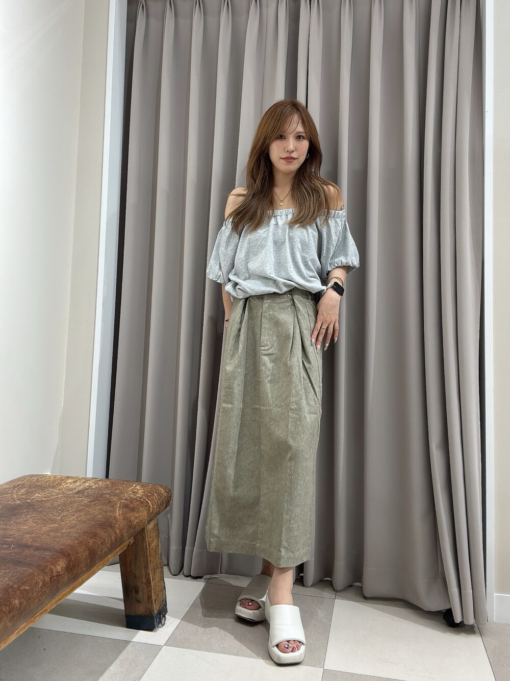 Riori(warehouse 軽井沢・プリンスショッピングプラザ)のスカート「ウエストタックスカート」を使ったコーディネート