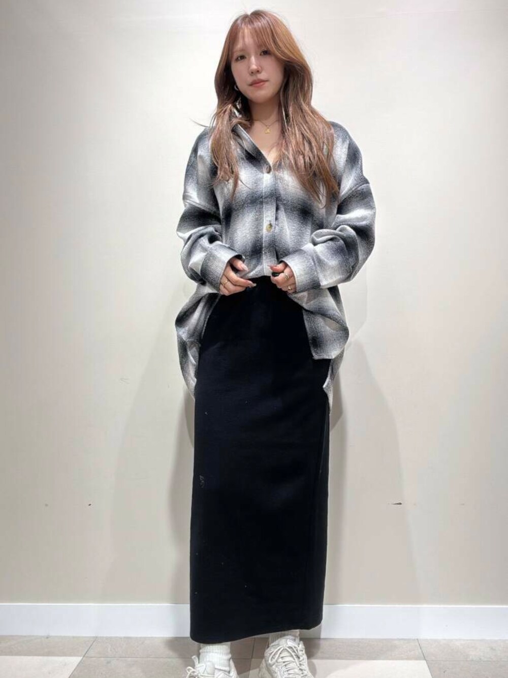 メンズのシャツをオーバーサイズで着てみました🥹 デニム合わせも可愛いのですが、 メンズ感が出過ぎないようにスカートと合わせました🫶🏼