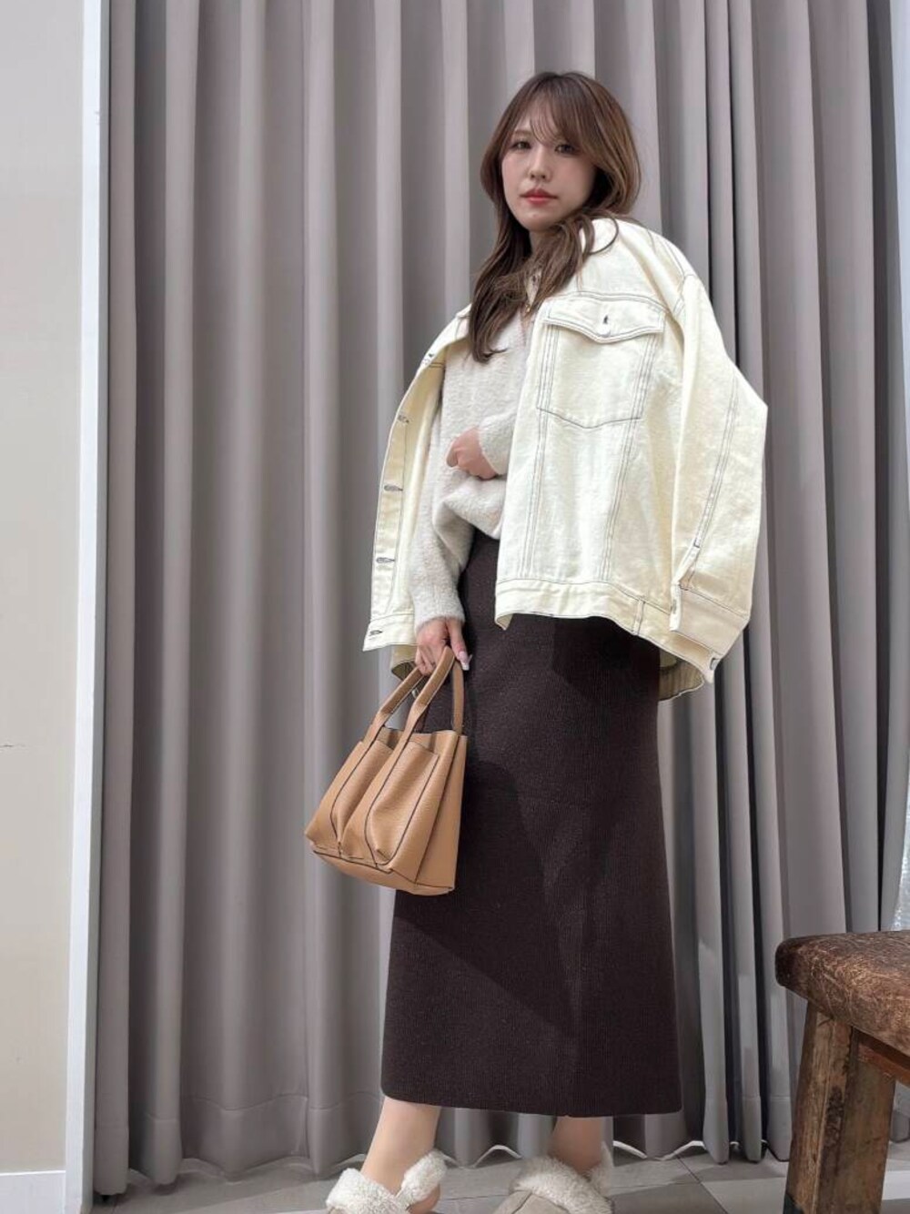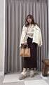 ジャケットを使ったカジュアルキレイめコーデ🤍 ラメニットのリブスカートは ラメが控えめにキラキラしていて カジュアルコーデの中でもキレイめに見せてくれます🤭