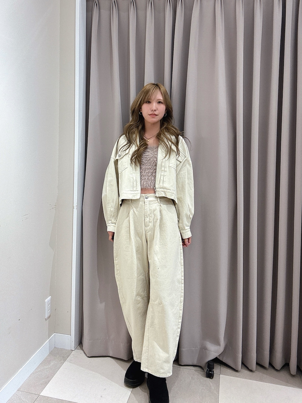 春向けセットアップ風🤍 クリームの色味が可愛く使いやすい万能アイテム🙂↕️ 足の形を拾いずらいバレルレッグなので、 気になる所を隠してくれるのも嬉しいポイント😤 トレンド感のあるセットアップコーデです🤭