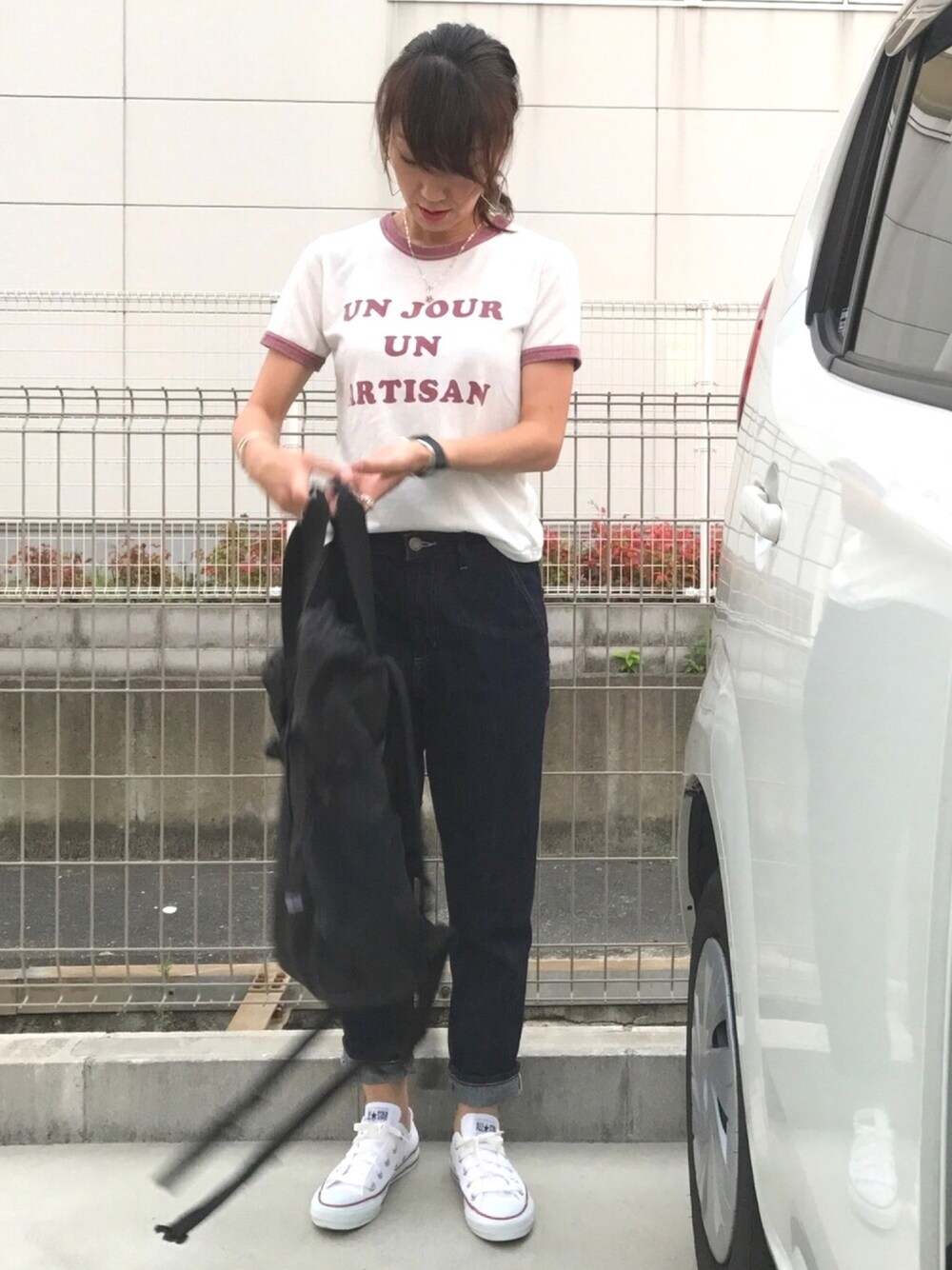 こんにちは😊🙌 慌てて撮って撮り直しできなかった今朝の1枚🤣 けど、投稿しちゃえ😝👍 ニコアンドのデニム履きやすくて良い❣️ いつもみなさん本当にありがとうございます✨✨