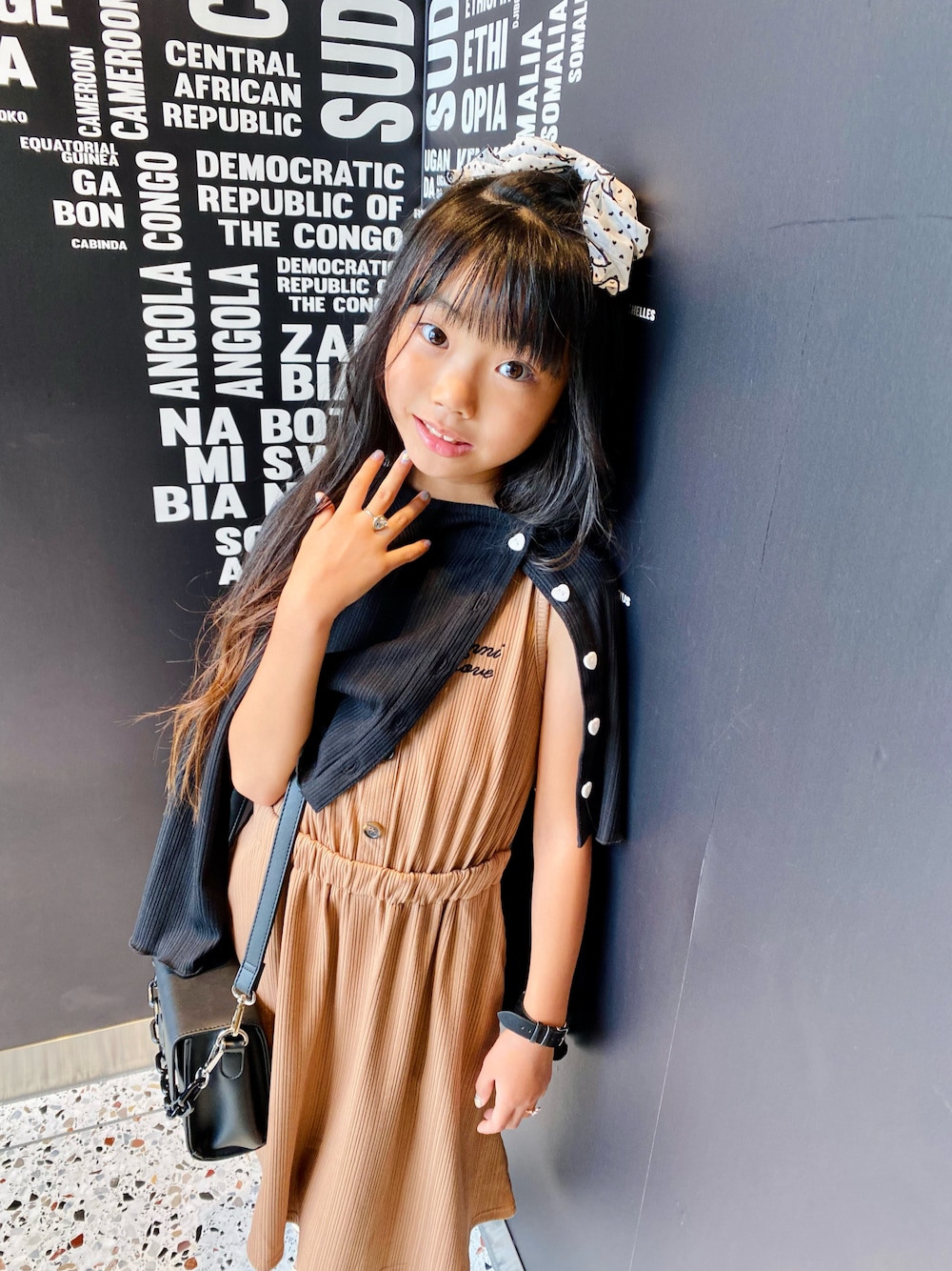 テラコッタカラー✖️ブラック 冷房と日焼け対策で カーディガン肩がけ♡ 大人っぽいコーデお気に入り♡