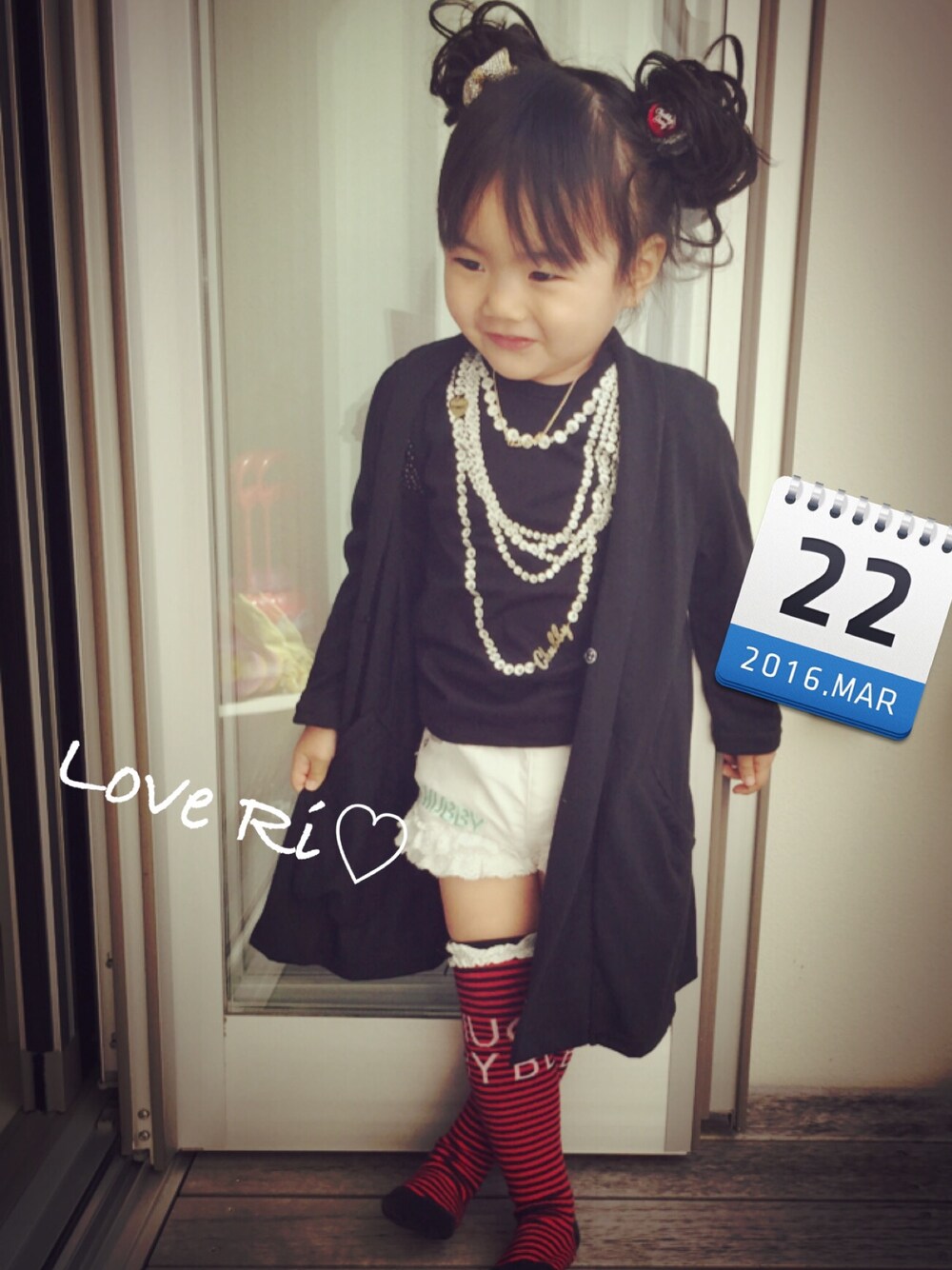 昨日のコーデ モノトーンコーデ♡ この上下にロングカーデを合わせたくて、探し続きて数ヶ月、偶然、しまむらにあったので即買い。笑 おチビすぎて90買ったら肩幅とかデカすぎた(>_<)(>_<)