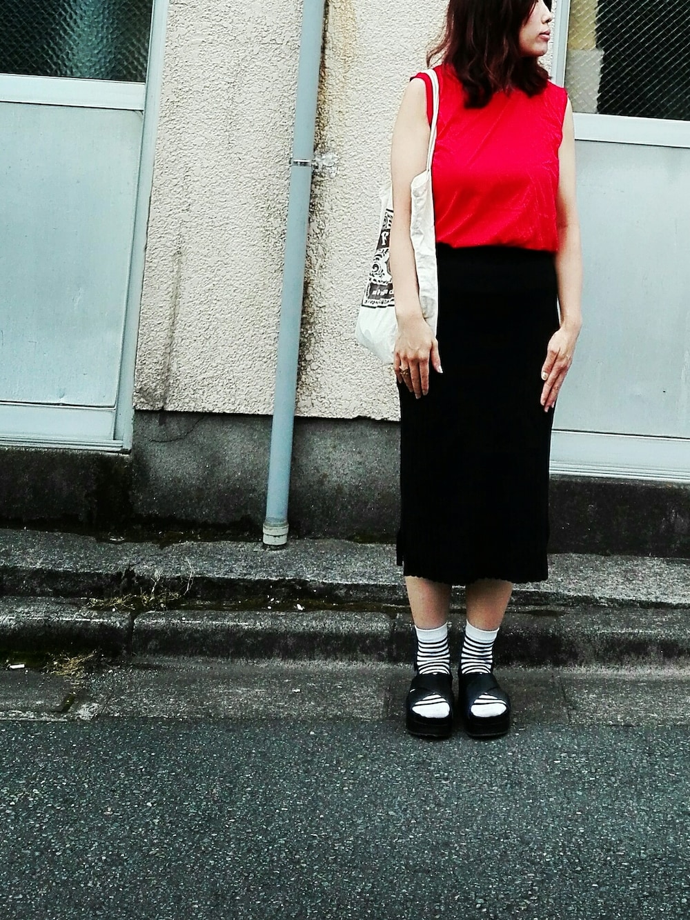 長めのベンシルスカートが主役。 下北沢のフラミンゴでもらったトートバッグとともに。 歳を重ねていくと、だんだん自分に似合わないものがわかってきます。 それでも諦めきれずに挑戦して、失敗したりするけれど。 私の場合は、袖ありの首つまりアイテムが似合わない。 それから、つばなしの帽子。特にベレー帽。 自分でいうのもなんですが、他の帽子はたいてい、着倒す(かぶり倒す)ことができるのです。が、ベレー帽だけはどうしても、にっぽんむかしばなしのおじいさんみたいになっちゃう。 それがですね、、、! 先日出会ったマダムと、『実は、趣味で帽子を作っているの』という話になり。しかもその日は、ご自分の帽子の個展帰りだとのことで、たんまり帽子を持っていたのです。 活動的で素敵です!あこがれます。 色とりどりの帽子を見せていただきました。そのなかにはベレー帽も。 『私、ベレー帽がびっくりするくらい似合わないんですよね』とつぶやいたら 『あら、そんなことないわよ』と、私の頭にベレー帽をのせて、ちょいちょい。 『ほらね』 !!! うそー!似合ってる! 感動しました。やはり、プロフェッショナルはちがいます。 あんな風に、素敵な歳の重ねかたをしたいです。 今日の一枚 相対性理論『シンクロニシティーン』