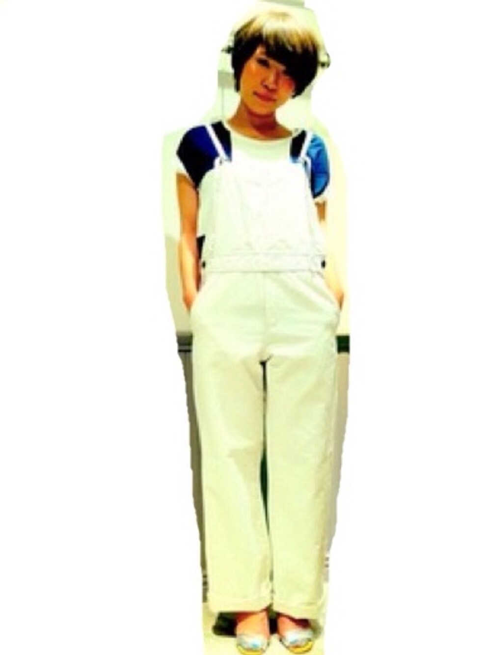 先輩が撮ってくださったお気に入りのコーディネート^ ^ 金髪がなつかしい。 足元はシルバーのサンダルで緩めのサロペットを大人っぽく^o^モノトーンでまとめてますぅ☆