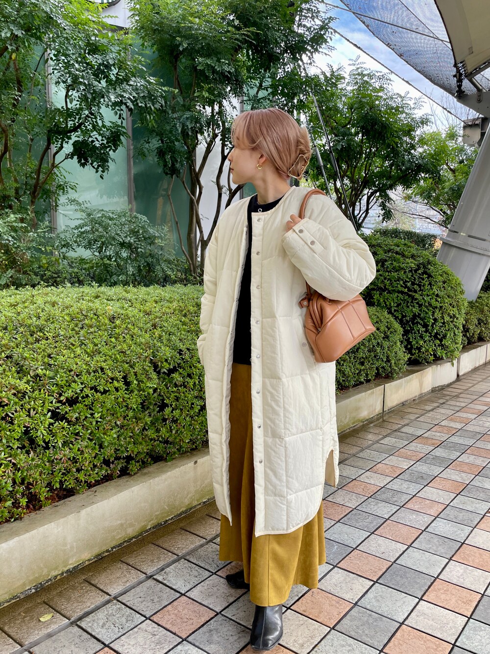 𝐑𝐈𝐂𝐎のノーカラーコート「キルトミドルコート」を使ったコーディネート