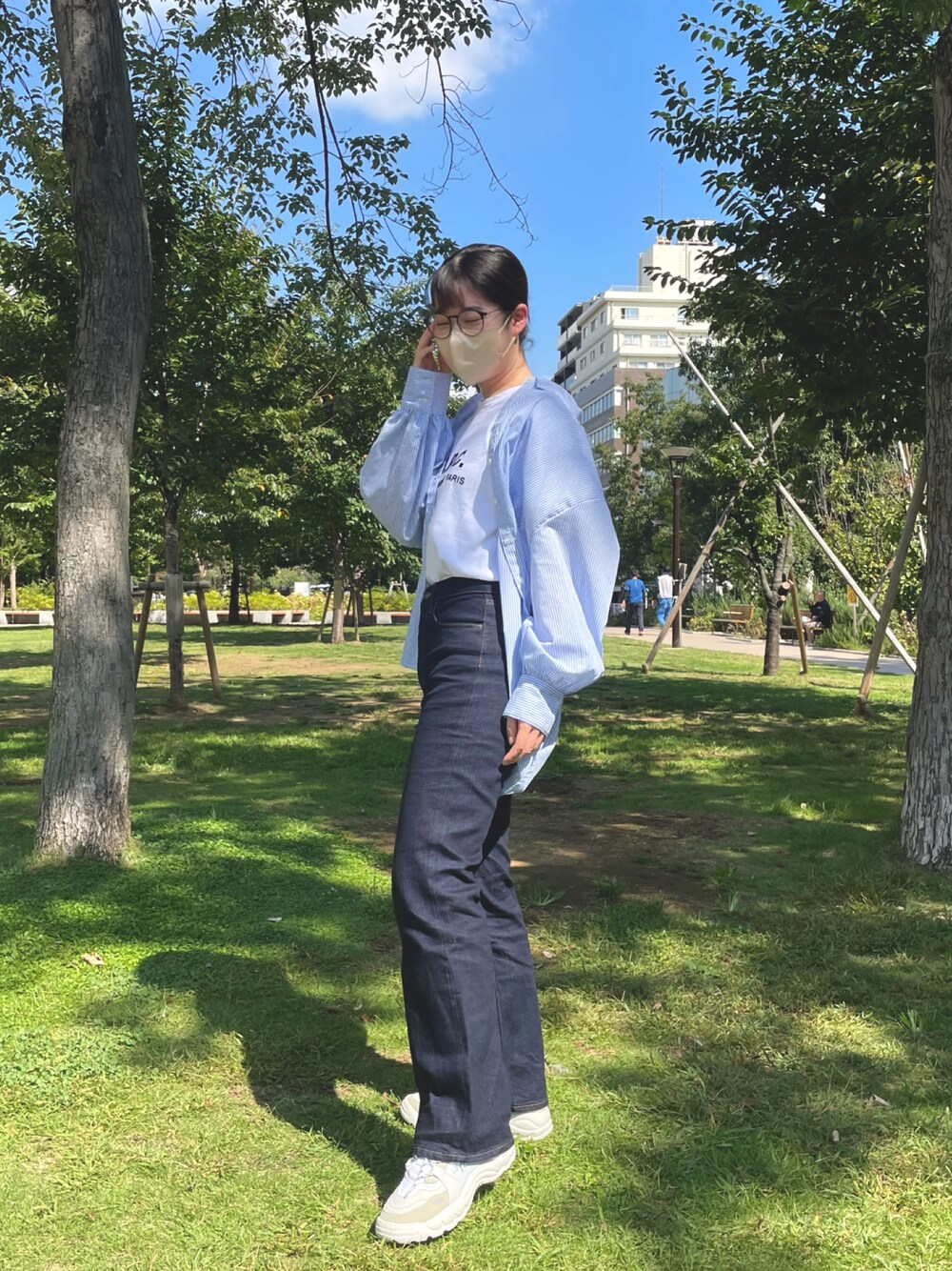 今日はUNIQLOのフレアデニムにお気に入りのAPCのTシャツを合わせてみました🕊𓈒 𓂂𓏸 最近は温度調節が難しいのでよくシャツを羽織っています·͜· 23.65のスニーカーも推しポイントです❤︎⸝⸝⸝ コーデの参考になれば嬉しいです✨