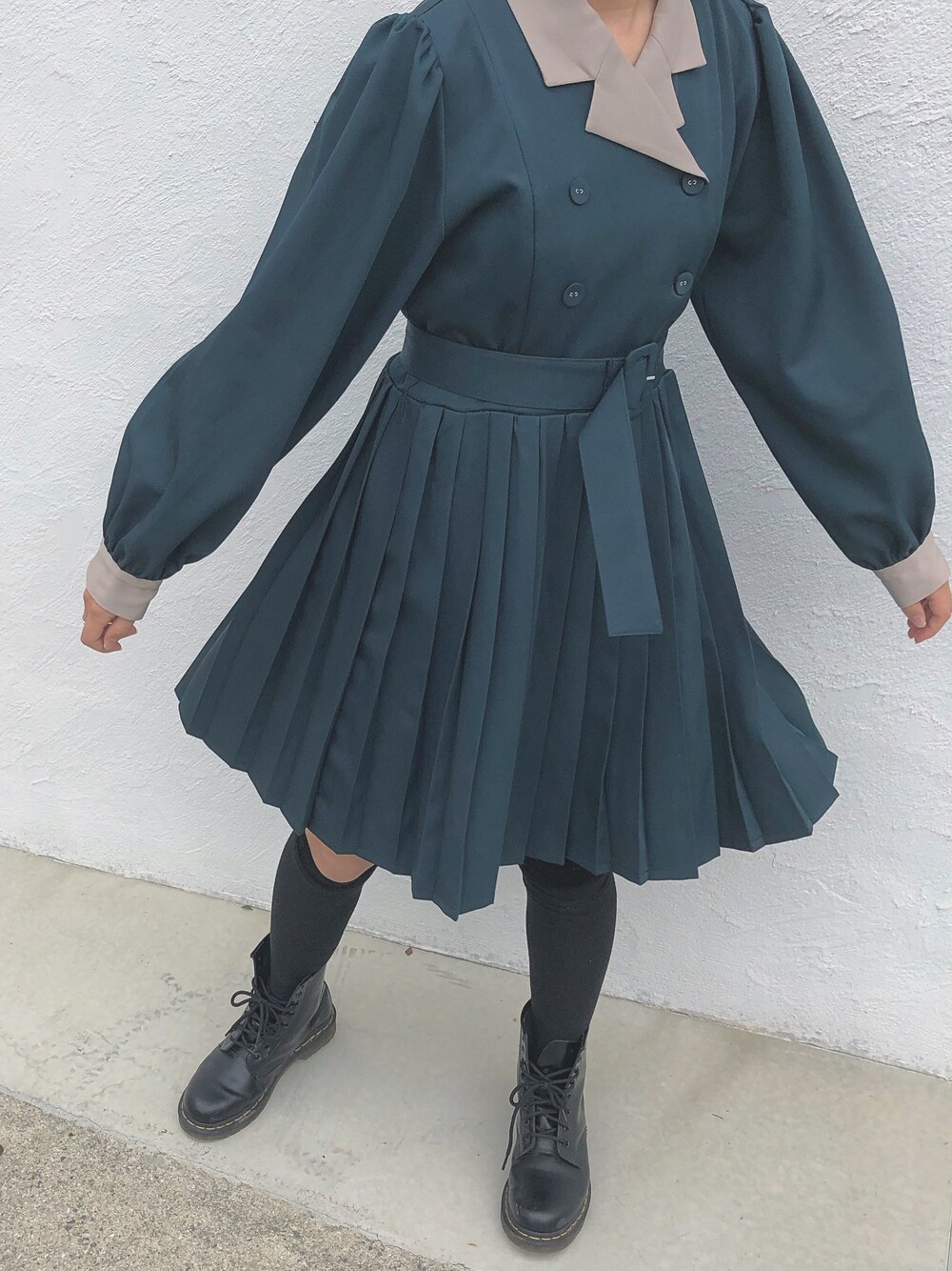 RIIのワンピース「ダブルボタンプリーツミニワンピース」を使ったコーディネート