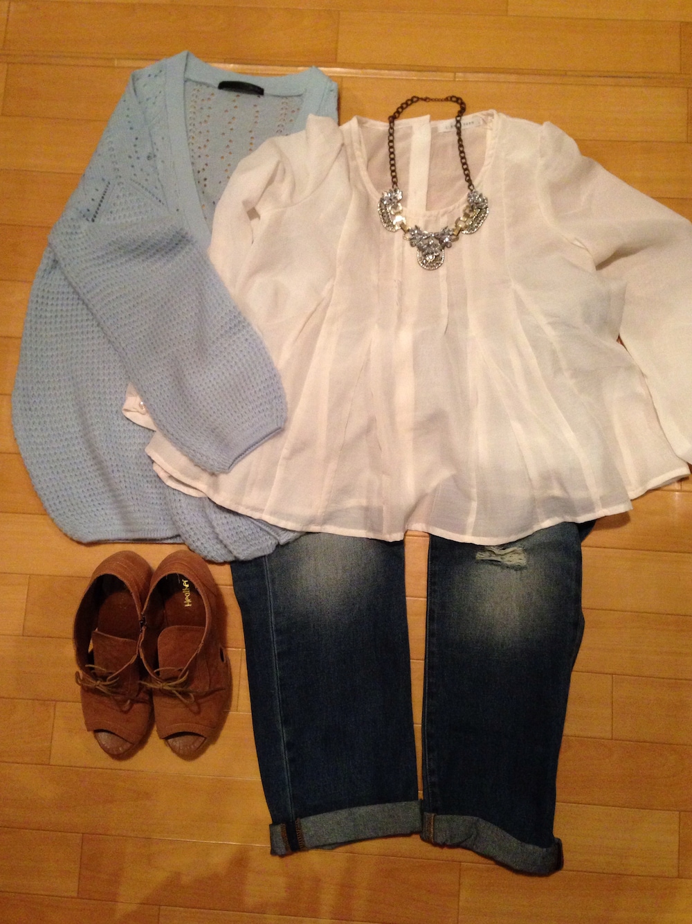 ちょっとそこまでなら、この薄いカーデで* ブラウス…LOWRYS FARM カーディガン…Heather ボーイフレンドデニム…GU ブーサン…Heather ビジューネックレス…ブランド不明 このネックレスかなりヘビロテ♡ Heatherがやっぱり好き♡