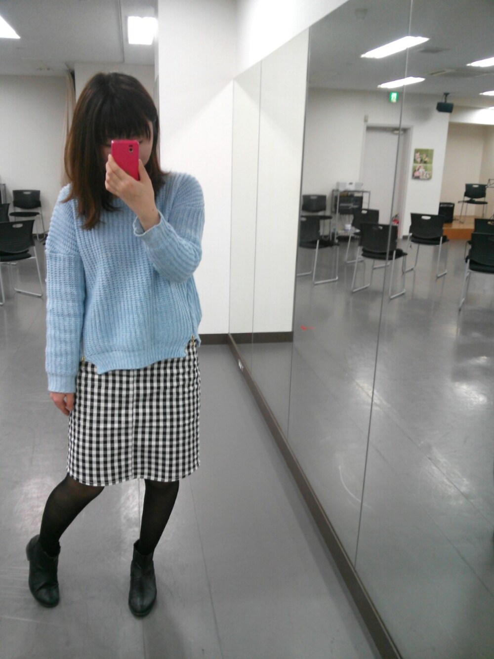 ニット→フィフス スカート→レイカズン 靴→ビス 最近モノトーン以外だと水色とか濃い青の洋服が気になる! そして、昔は好きだった赤とかピンクの洋服がぐっと減った! というわけで今日はパステルブルー?のニットです♪
