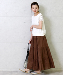 どカジュアルも大好きですが、この夏は力の抜けた大人カジュアルを着たい気分です。 そしてブラウンブーム! ティアードスカートはLLなのでぽっちゃのわたしにはありがたいサイズ展開✨ いつも見ていただいてありがとうございます🙇 Instagramも毎日更新中です🌼 yuu_mjuk