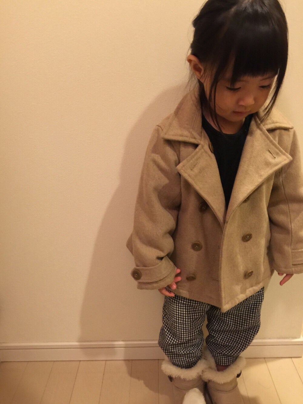 長女が生まれて間もない頃、どうしても欲しくてセール価格でgetしたコート。 着れるようになりました!! 大きくなったなぁと実感。。。