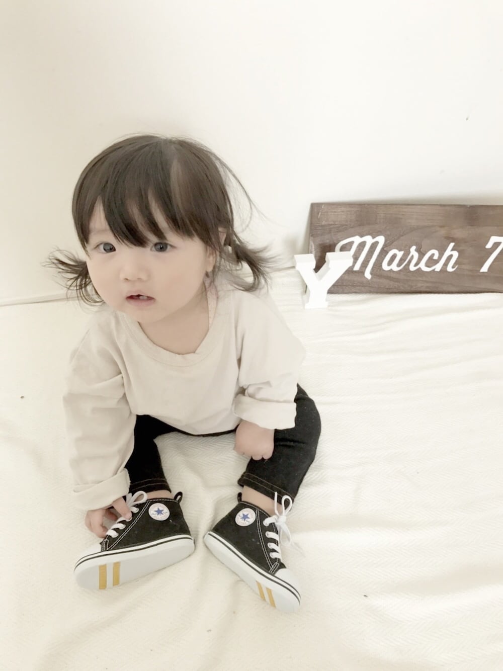 別ショット。 昨日1歳の誕生日を迎えた二女に 母娘3人お揃いのスニーカーを プレゼントしました♡♡ 早く歩けるようになってお散歩しようね! お気軽に♡、+、コメント、フォローしてください( ^^ )*゚