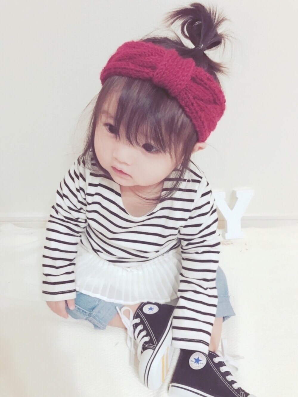 お誕生日のお祝いにあげたお洋服とスニーカーでコーディネート♡ ママのお手製ヘアバンドでアクセント✯✯ お気軽に♡、+、フォロー、コメントください(* ॑꒳ ॑* )