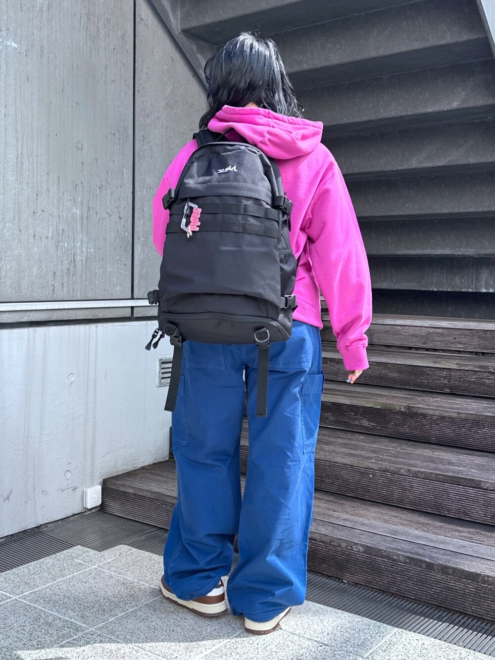 那須川梨々(X-girl Store)のバックパック/リュック「【X-girl /エックスガール】 MILLS LOGO ADVENTURE BACKPACK ミルズロゴ アドベンチャーバックパック」を使ったコーディネート