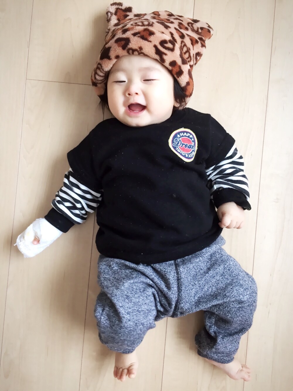 今日はブラック系でシンプルにまとめてみました♡ でもね、中の肌着はピンク色♡笑 お姉ちゃんのおさがりです^ ^ 見た目は男の子なのに中はピンク♡ ギャップ萌え〜♡ って1人でニヤニヤ、親バカです( *´艸`)