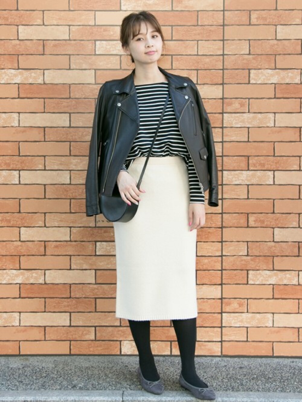 モノトーンで合わせたシックなコーデ☺♪ ボーダーのトップスがカジュアルさをプラスした背伸びしすぎない感じでスタイリングしました♡!!