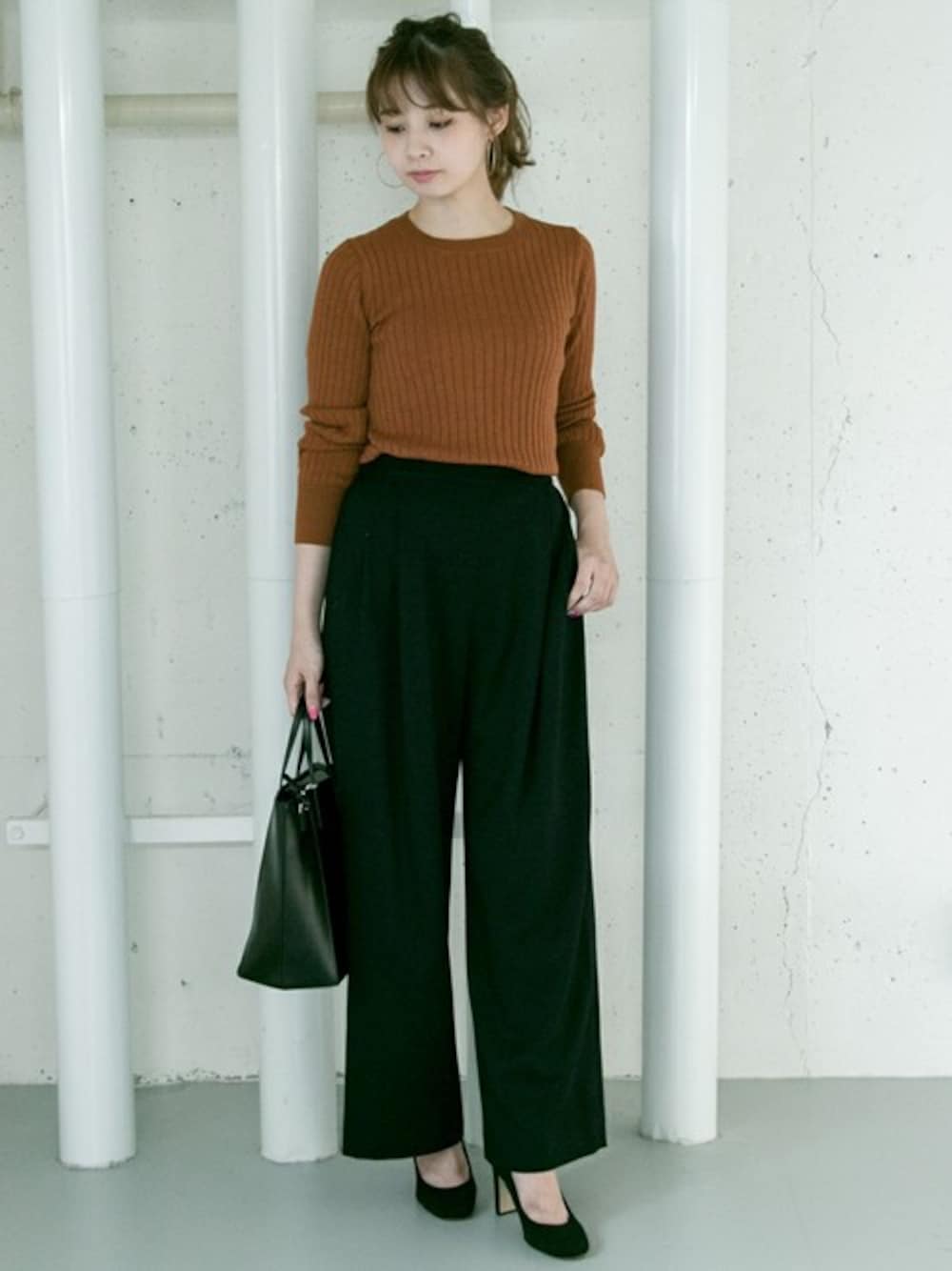 明るめのキャメルが可愛いリブニット^^♥ 足元はパンプスでキレイ見えにしました!!