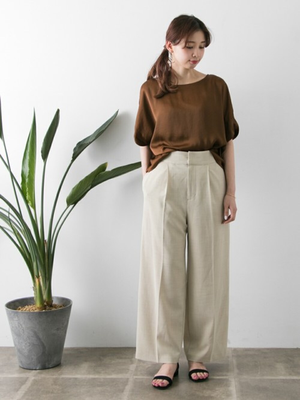 NAGASE RIRIKAのTシャツ/カットソー「ヴィンテージサテンTシャツブラウス」を使ったコーディネート