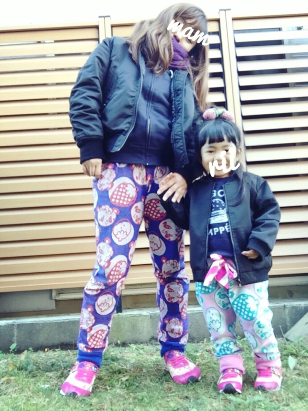 娘のトレーナーはchampionとのコラボなので、何気にリンクしてますwww 最近色違いやアイテム違いのリンクコーデもしてます♡ 前回のように完璧なオソロコーデだとかなり濃ゆくなるので、本当はこれくらいが好きだったりします(*´艸`*) 娘の頭に付いてるのは、母のハンドメイドのイチゴヘアゴムです♡