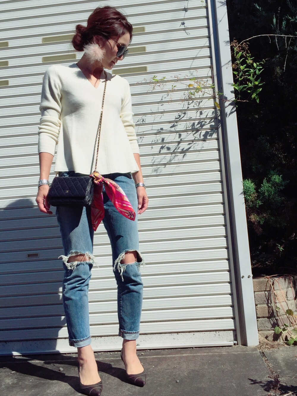 今日のコーデ☺︎ UNIQLOのラメールコラボのニット♡ 形かわいい♡ お気に入りのピアスとスカーフメインのコーデ♡ ずっとこのピアスしたかったけど、すると顔が熱くなってできなかったんです>_< やっと付けれてうれしいな🎶 ではでは、久々のランチ行ってきます(๑´罒`๑)