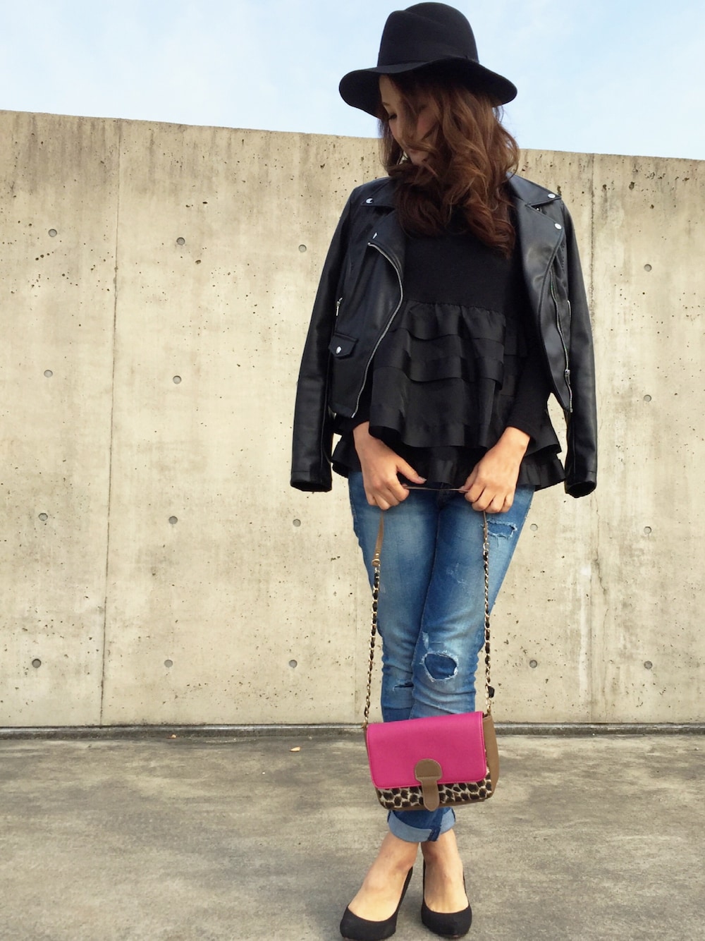ほしららのハット「ウール中折れリボンハット」を使ったコーディネート