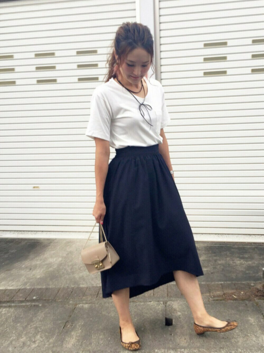おはようございます♡ このイレギュラーヘムスカート、レディにもカジュアルにもはけちゃう優れもの♡ ちょっと光沢感ある生地感で、お洗濯してもシワにならなくて、これまたノンアイロン〜(b'3`*)♡ そしてウエストゴム万歳♡笑 後ろが長めなテールカットが、歩くとまたかわゆいです♡ 可愛らしくはきたい気分だったので、レオパードのバレエシューズ合わせました♡ いつもみていただきありがとうございます☺️✨