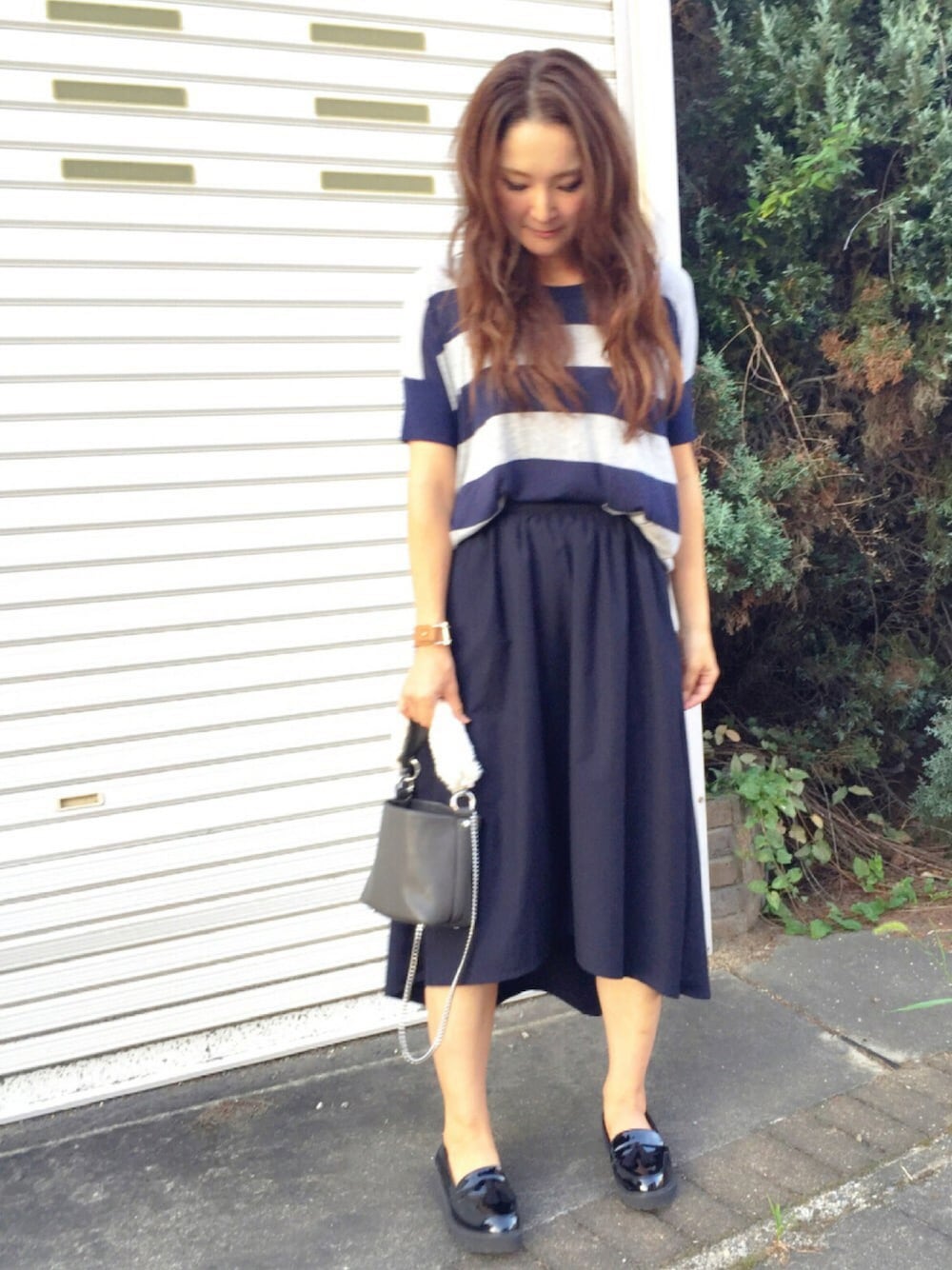 おはようございます(´˘`*) イレギュラーヘムのスカートにボーダーのニットを前だけイン やっぱりまだまだ暑いので、靴とカバンで秋を♡ ウワサの?セミウェットヘアにしてみました笑←ただそんなwaxつけてみただけ( •́ .̫ •̀ ) 写真じゃまったく伝わらず笑 いつもみいただきありがとうございます☺️