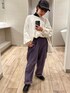 初めてパイロットキャップ被ってダボっとしたパンツ履いてみました☺︎