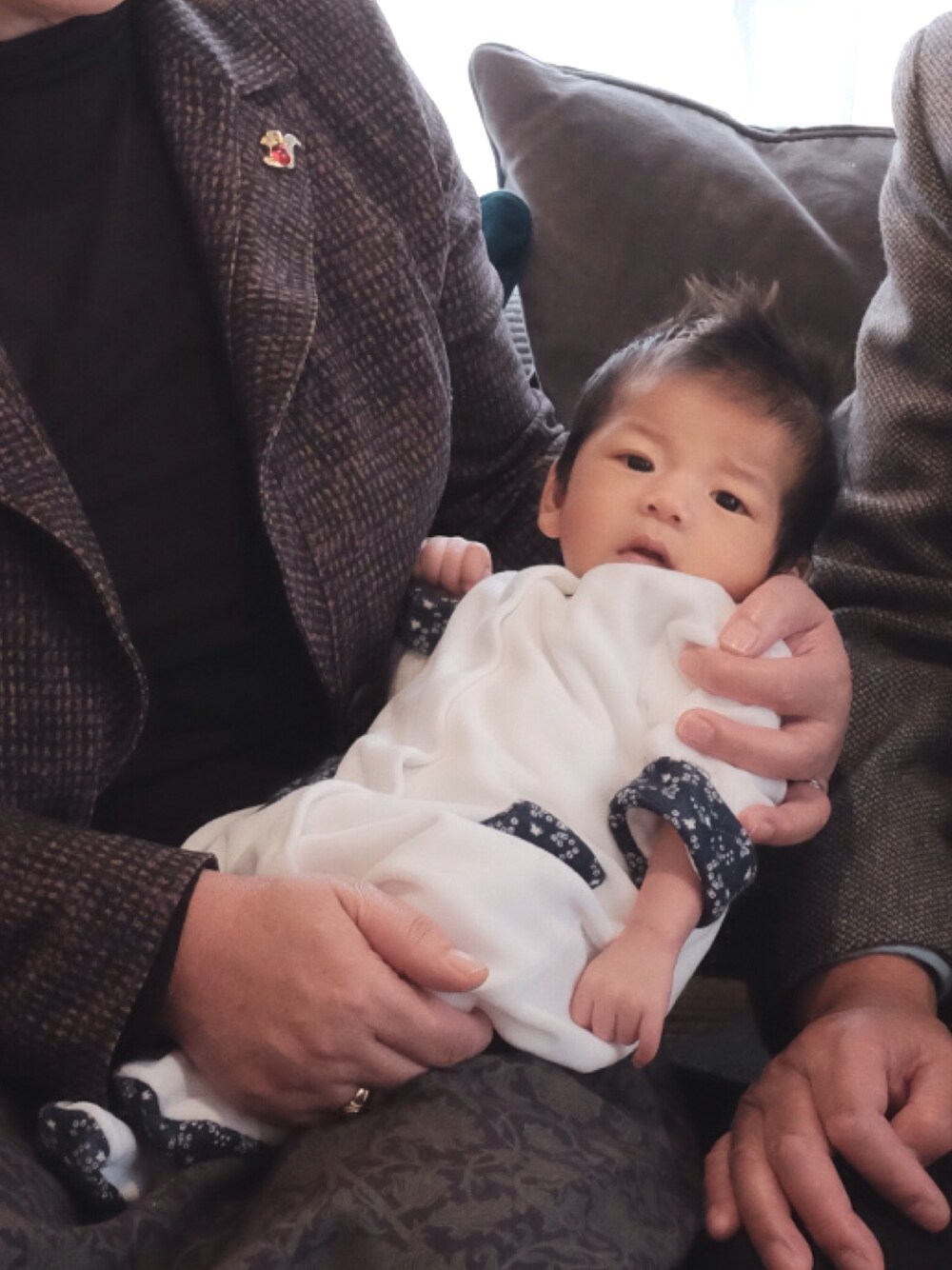 お宮参りの日 じーとばーに抱っこされて