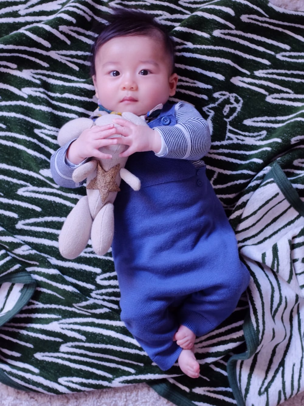 ミナペルホネンの馬柄のハンカチ何年もタンスの奥にあったけど、たろたんにこれから巻いてあげよう♡