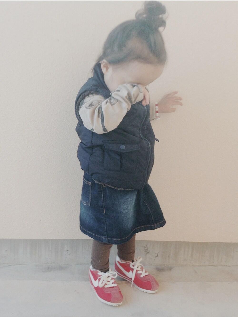 その他のデニムスカートを着用したキッズの冬コーディネートの1枚目の写真