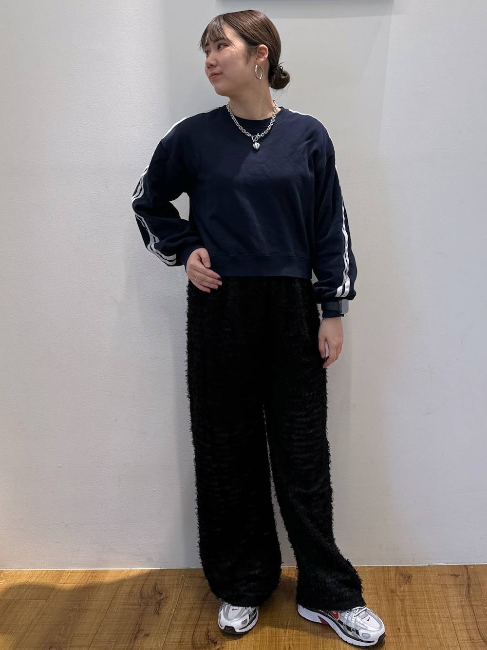 スウェットコーデ✨️ 上のスウェットは、ラインが入ってるのも可愛いポイントですが、ほんとに着やすさ抜群です🙆♀️✨️ 下のズボンはウエストゴムですごい履きやすいアイテムになってます🙆♀️