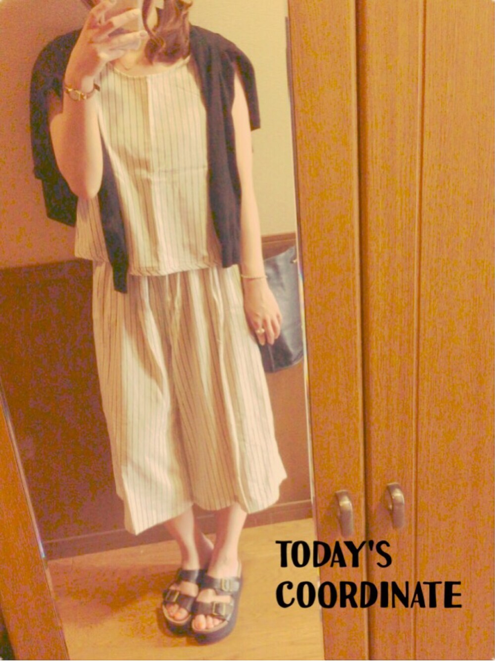 RISAのサロペット/オーバーオール「2wayノースリーブプルオーバー×サロペット(ストライプ)/ae NSL PO×SLPT STRP◆」を使ったコーディネート
