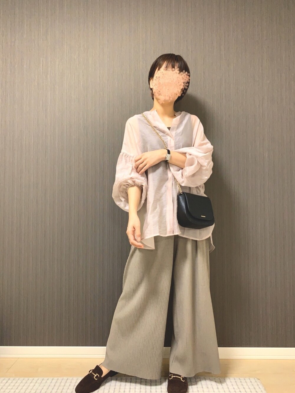 mysticのシアーブラウス。 絶妙なピンクベージュと ビッグシルエットなゆるっと感が お気に入りです^^