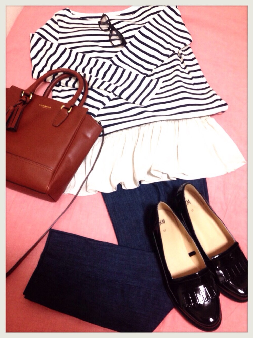 カットソー→ユニクロ タンク→フレディアンドグロスター デニム→バナリパ バッグ→コーチ 靴→H&M
