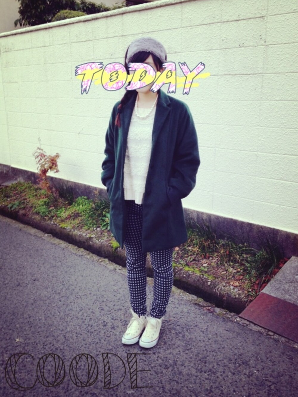 アウター kastane ニット mystic チェックパンツ yevs ヘアーバンド kastane スニーカー convers