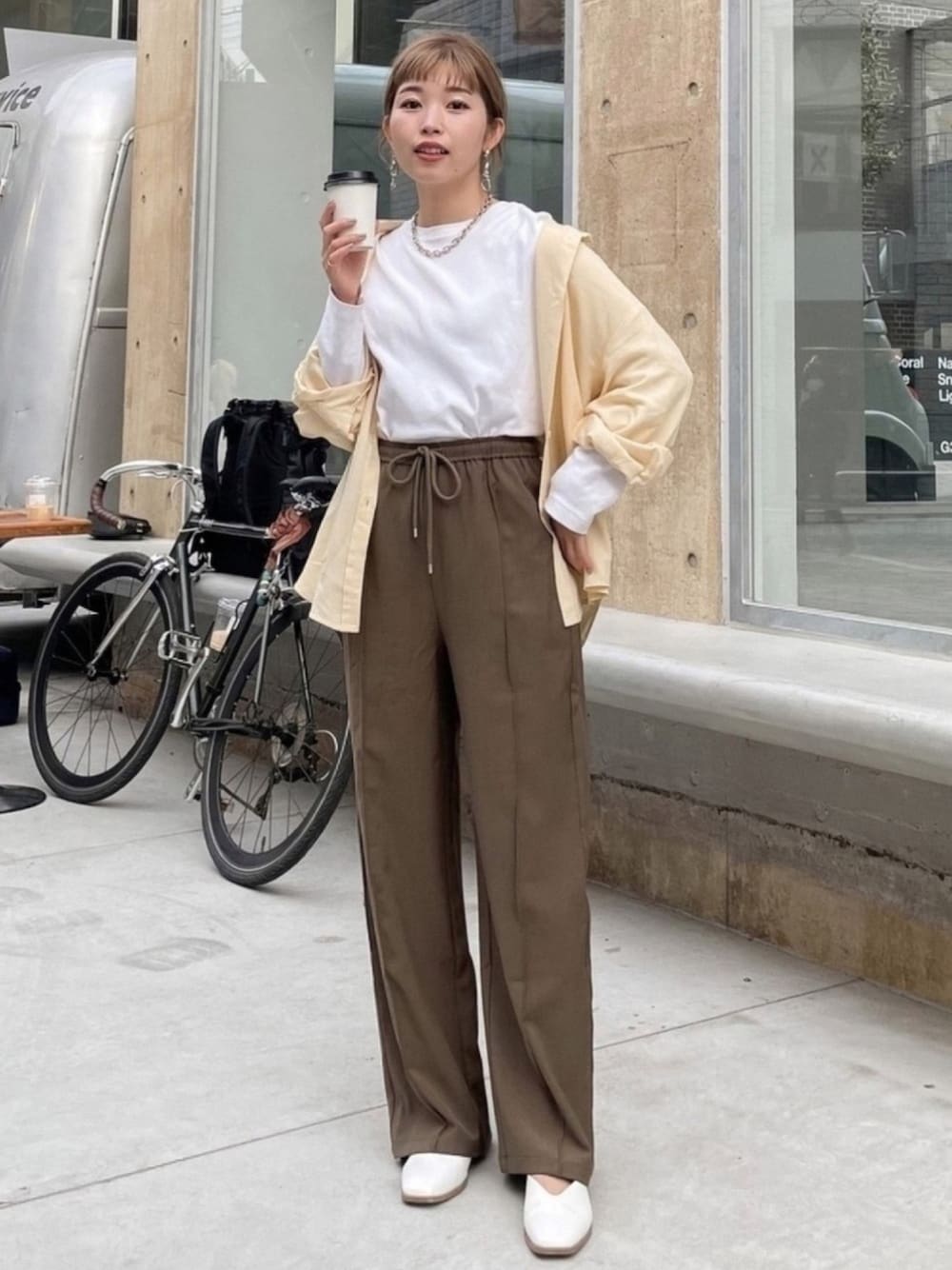 こんにちは! テーマはカフェラテコーデ☕️ メンズのGUのロンTが着回ししやすい◎ KLEAMEのパンツは縦ラインが入ってるので 脚長効果と痩身効果がすごくてヘビロテ! カラーを入れて春っぽく🌷 Instagramやってます。 ▷ @__risa__32 (アンダーバー2つずつ!)