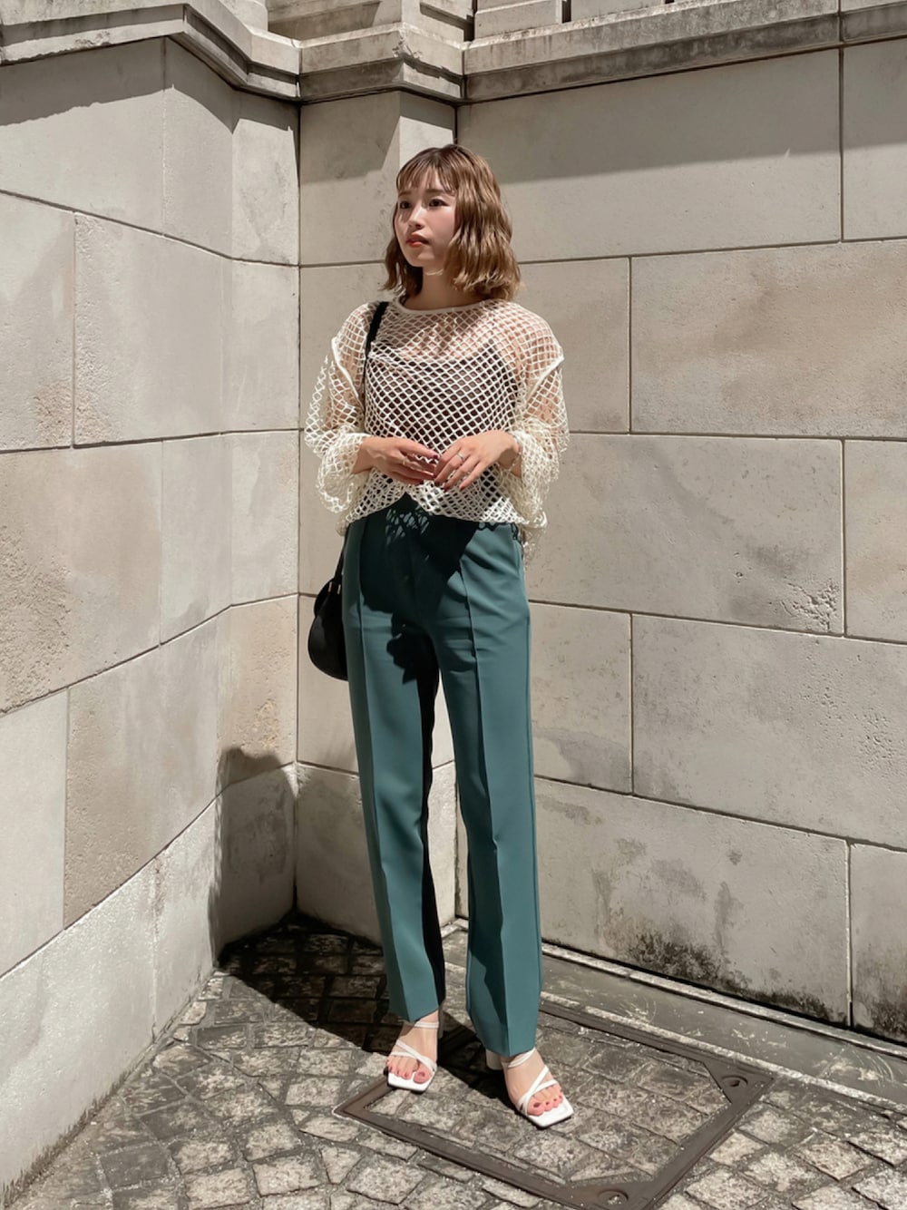 158cmコーデ☕️🌿 攻めデザインのメッシュトップスと美脚パンツ。 Instagram @__risa__32