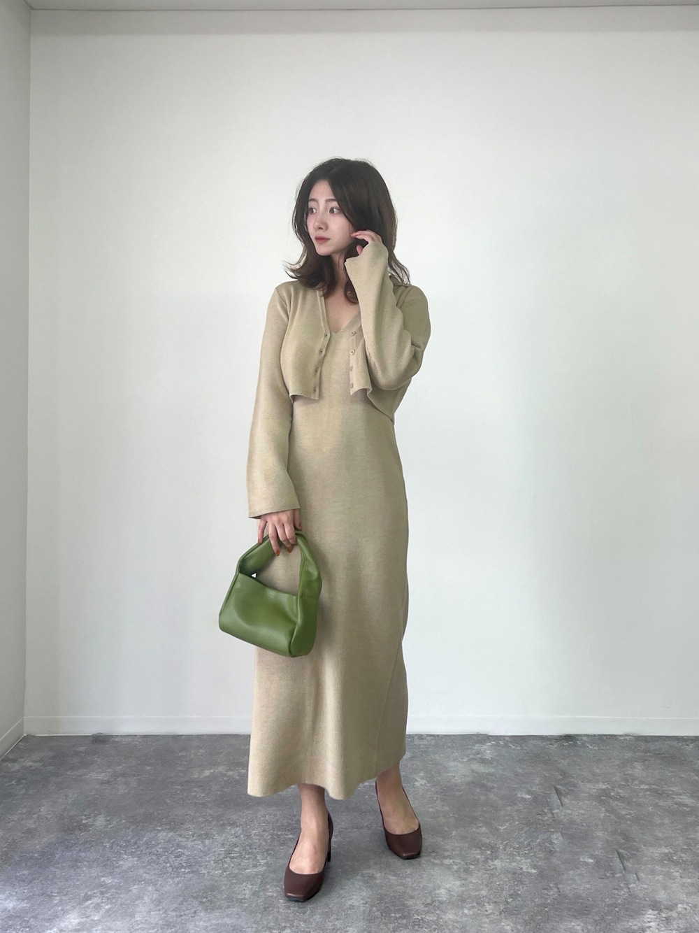 ニットのセットアップコーデ🧶 カーディガンがショート丈なのでバランスが凄く綺麗でお気に入り♡ Instagram→@__risa.h__