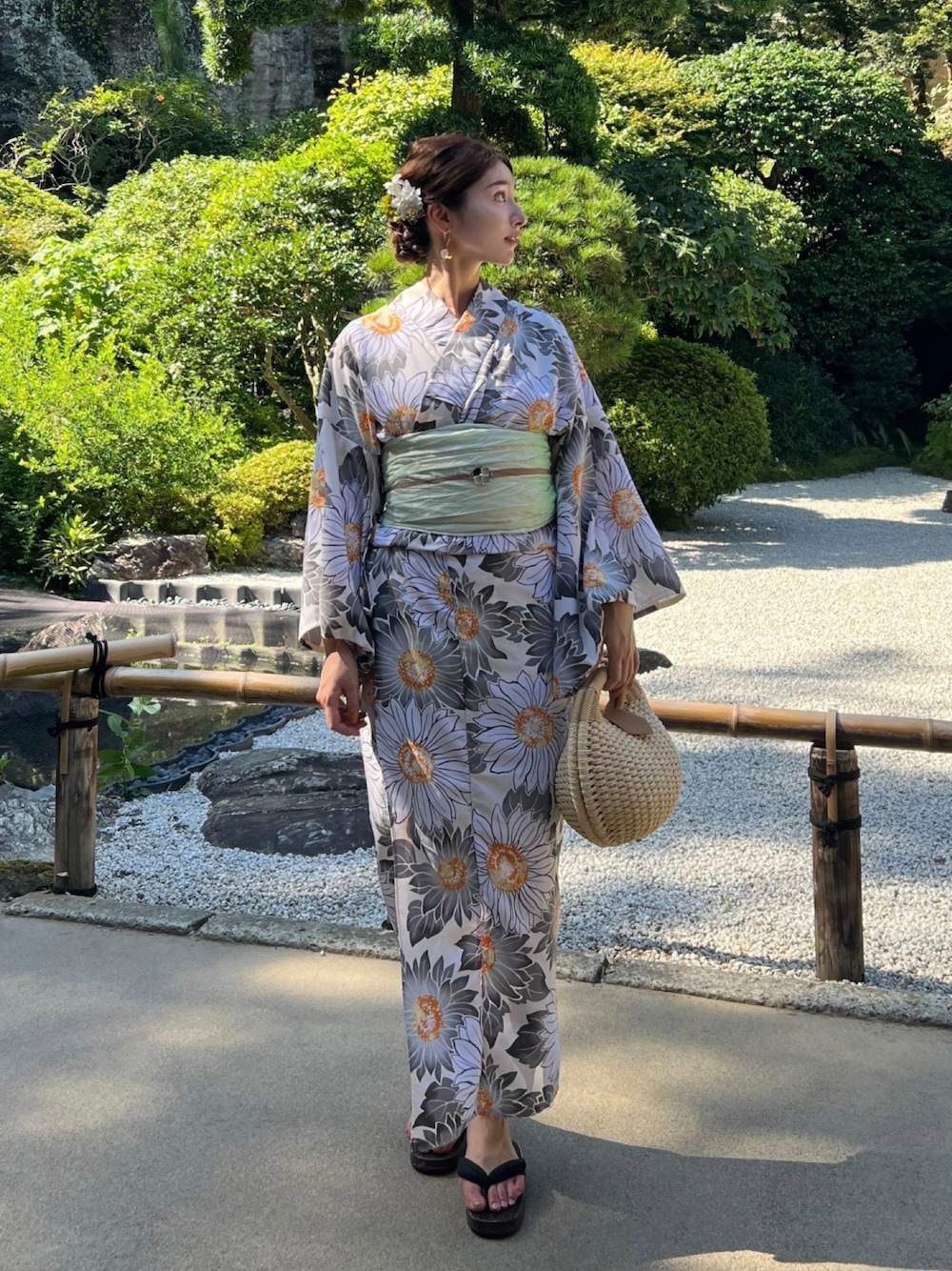鎌倉でレンタル浴衣👘 グリーンの帯が可愛くて、ヘアアクセも合わせました♡ Instagram→@__risa.h__