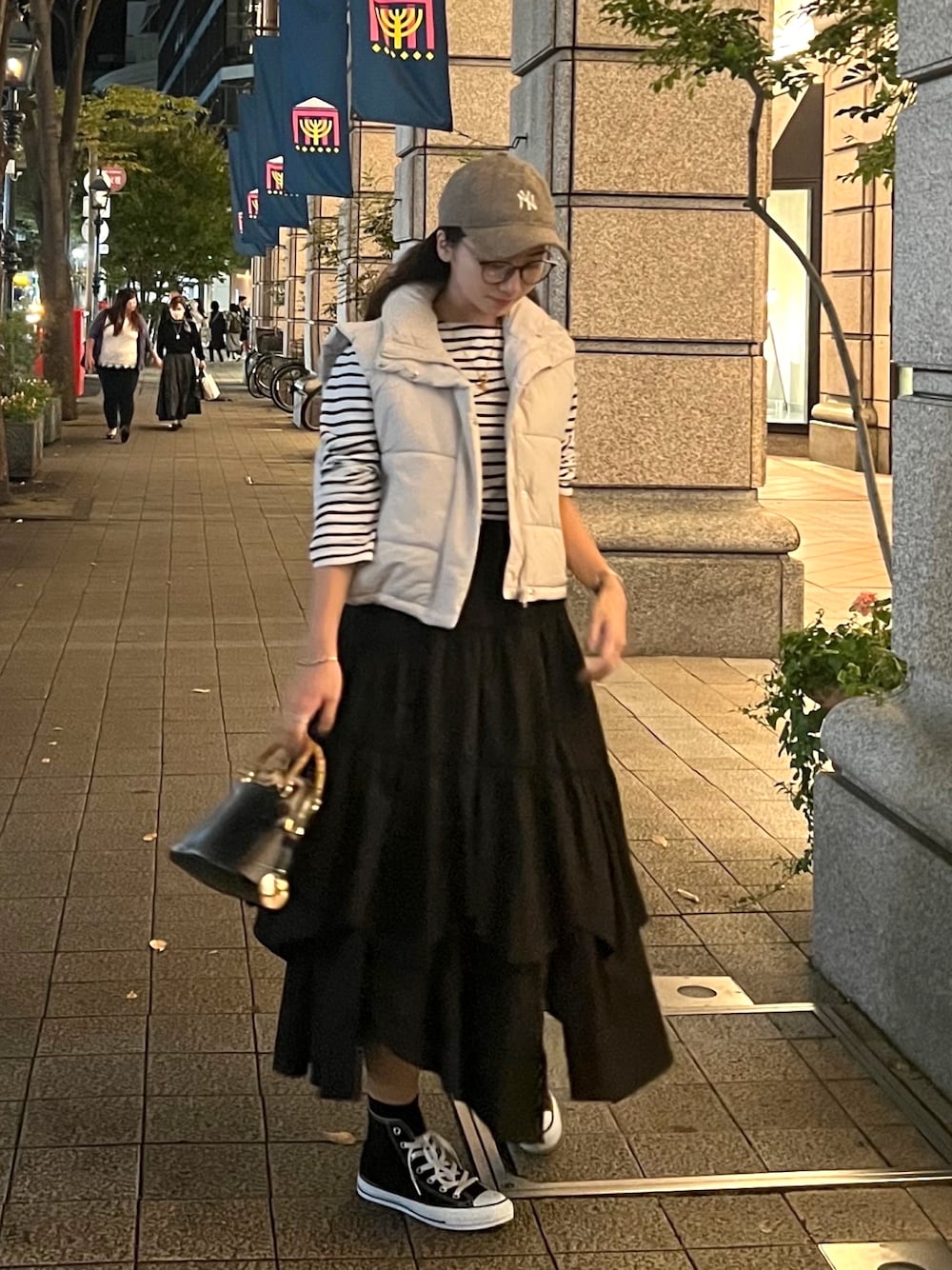 ダウンベストが可愛いシーズン♡ ロンT合わせだったら今から着れます! 寒くなったらニットとのレイヤードも🧶 Instagram→@__risa.h__