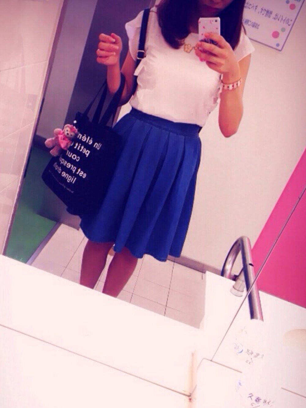schoolに。 遅くてすみません😭💞 今日は、暑いのでノースリーブの フリルのついたトップスです💞 下はGUのミモレ丈です💫💫 明日も見てください👀
