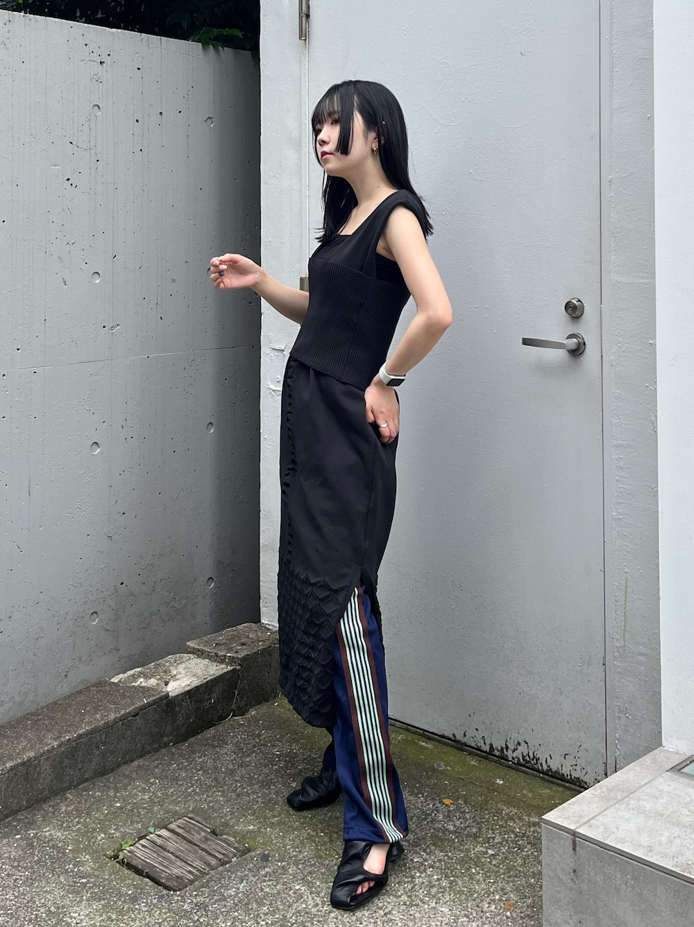 155cm骨格ウェーブです。 人気のNeedlesパンツ×ニットワンピコーデ。 サマーニットワンピのサイドスリットから覗くNeedlesサイドラインが◎