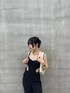 155cm骨格ウェーブです。 大胆肌見せのオールインワン。 シアートップスをレイヤードしても◎