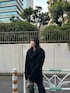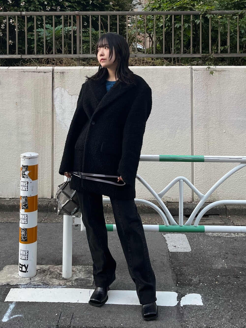 155cm骨格ウェーブです。 アウターはボタンをとめる位置でシルエットを調整できます。バックスタイルも綺麗です。