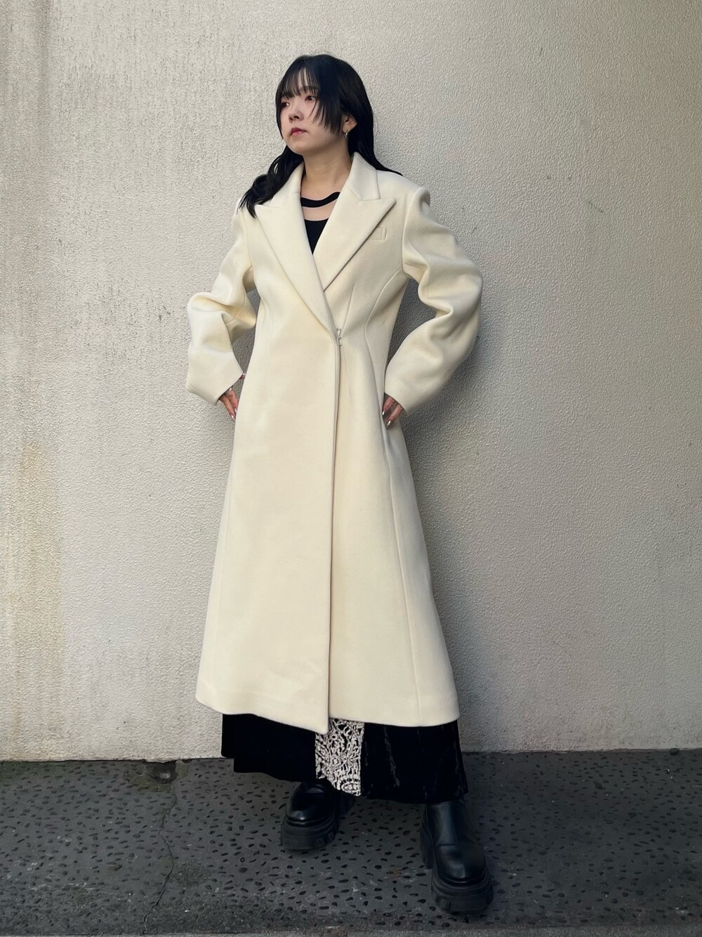 Risa(STUDIOUS WOMENS)のチェスターコート「【STUDIOUS/ステュディオス】Super140sピークラペルウールコート/脚長/スタイルUP/モード見え」を使ったコーディネート