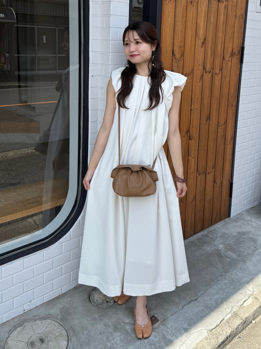 risaのショルダーバッグ「【6色展開】がま口ラッフルフリルデザインのミニレザーショルダーバッグ」を使ったコーディネート