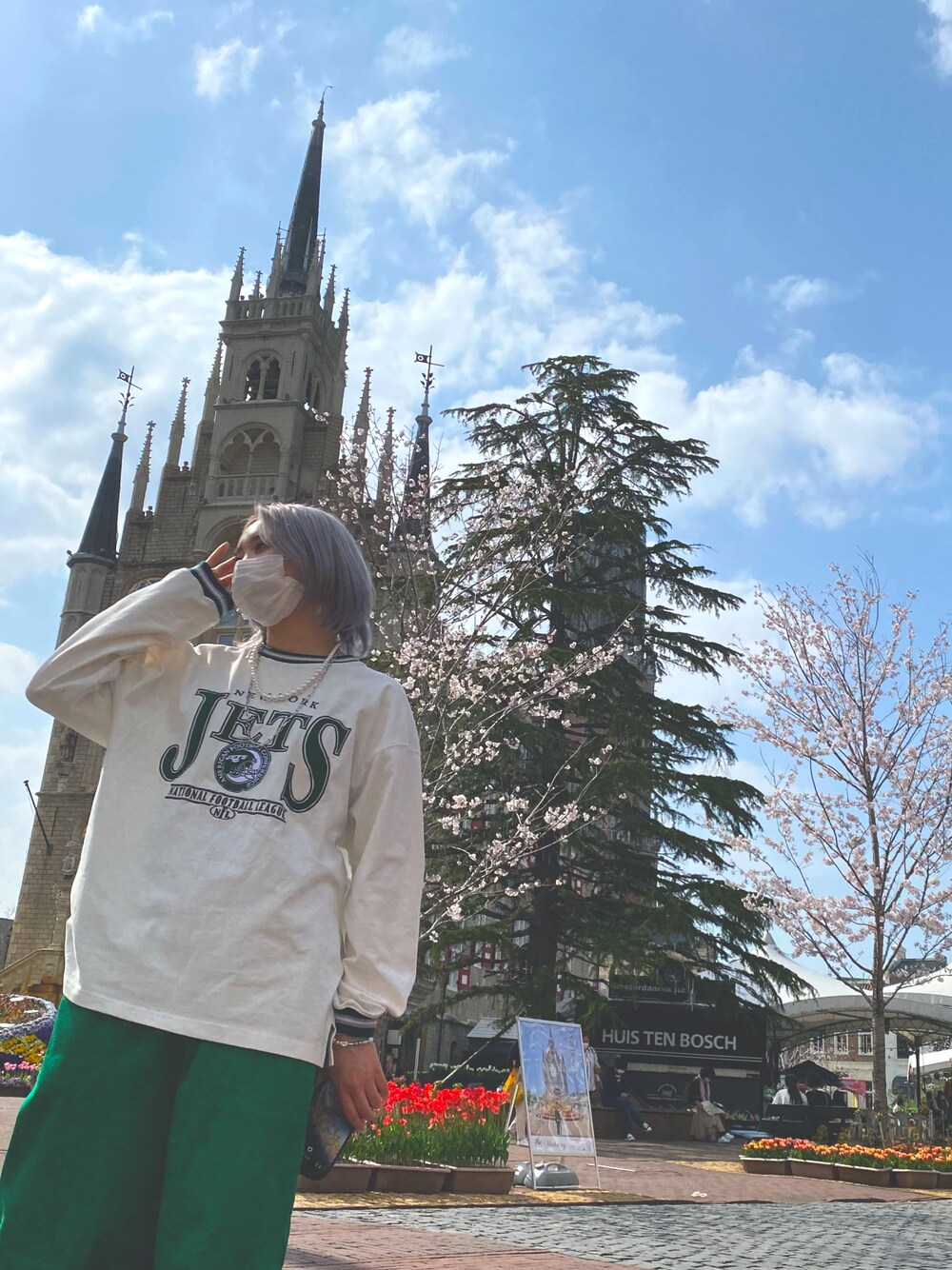 メンズライク🌿🍃 ラフに着れるのにオシャレに見える最高!、 トップスのロゴのグリーンと、カーゴパンツのグリーンを合わせるとまとまりが効くから🙆🏻♀️❕ コンバースのカスタムもすごく可愛い、、、 誰とも被らないのいいよね👍