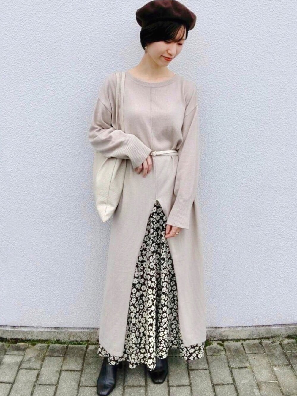休日コーデ𓐔𓊯𓐓 ベレー帽を使った秋らしいコーデをしたくて、実際に私がきている店頭コーデのワンピに、去年の買った着用の今も大好きな 花柄Aラインスカートで華やかさをプラスしてみました𓂃 𓈒❁⃘ リングやベルトはゴールドで統一して オータム感🍁📚